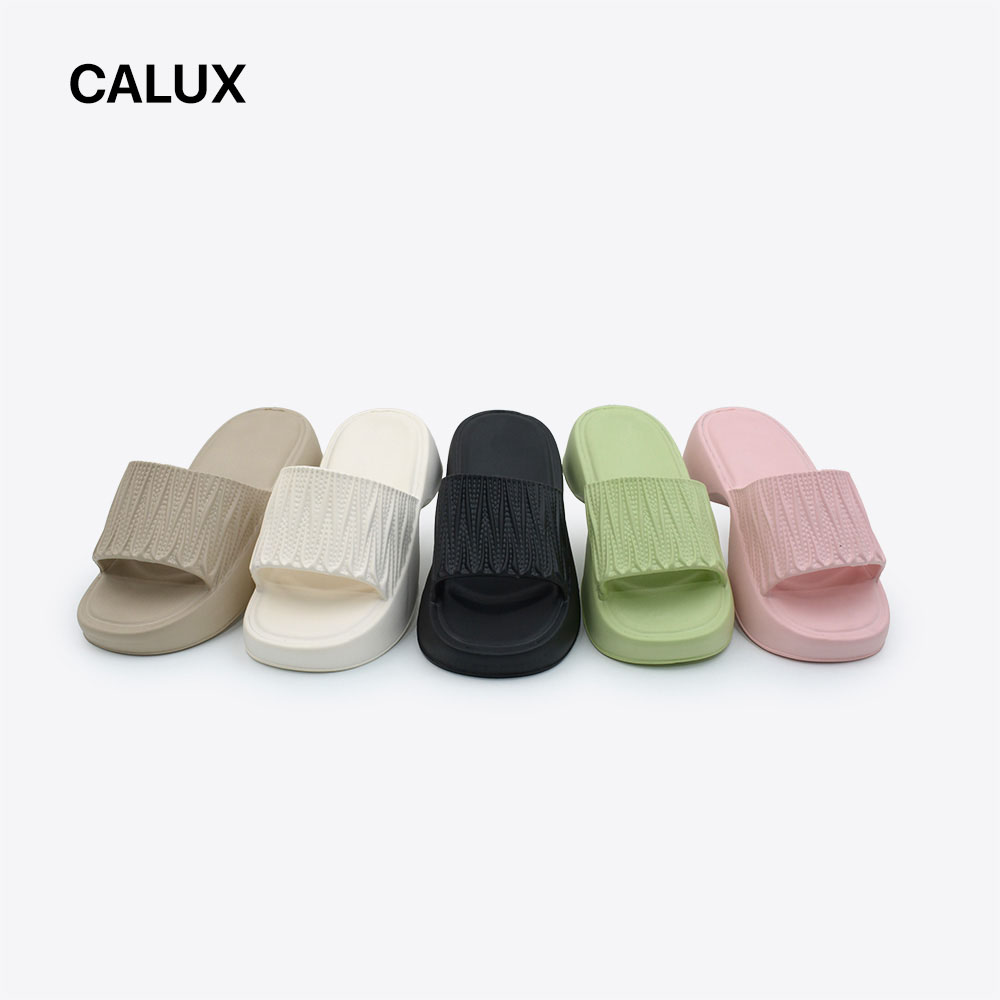 These slippers are made from eco-friendly EVA material and come in five colors: beige, ivory, black, light green, and pink, catering to various style preferences. The upper part of the slippers features a unique textured design, adding both a fashionable look and a comfortable feel. With a thick sole design, these slippers offer excellent support and cushioning, making them ideal for everyday wear, whether at home or outdoors, combining comfort and style seamlessly.